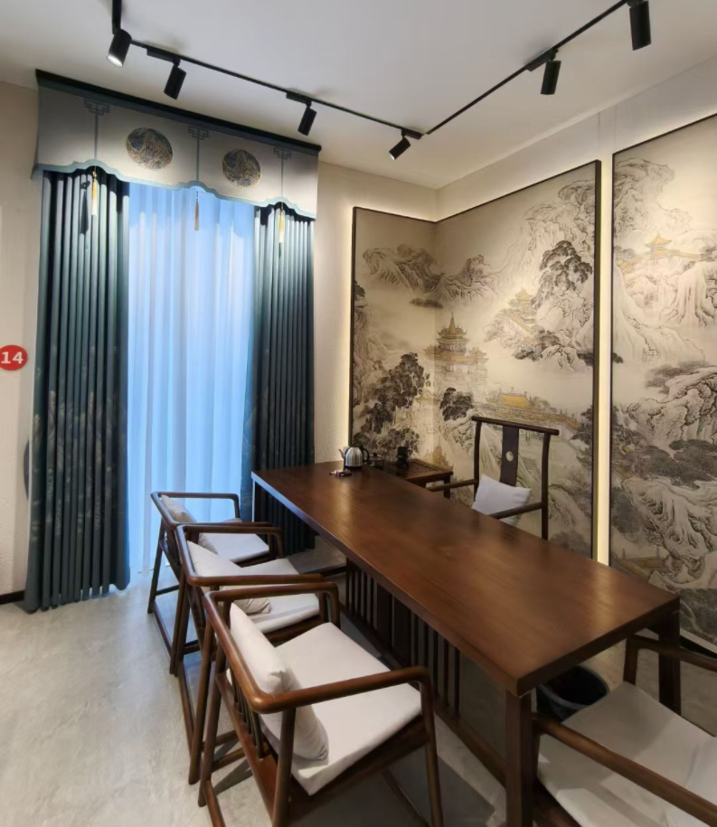 当我们走进这家展厅时,被其装修风格和产品深深吸引,在前台客服人员的引领和详细介绍下,陈列的产品让我们有了直观的认识。“欧式、美式、法式、意式极简、中式、新中式、中古风、田园、现代、轻奢、后现代”等风格的产品应有尽有,各种材质的成品窗帘齐全。色织大提花都是高精高密,采用物理方法遮光,档次高又环保,无论是款式还是工艺都让我们感到很满意。