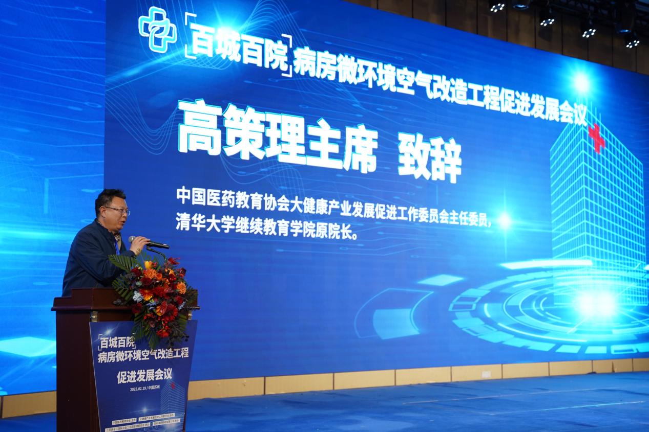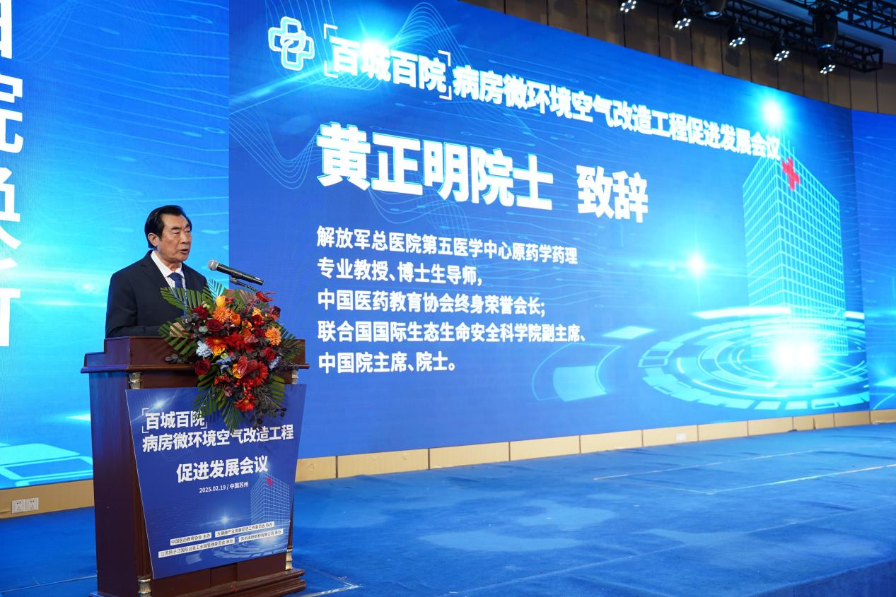 随后,黄正明院士发表了重要致辞。他对 “百城百院・病房微环境空气改造工程” 的启动表示热烈祝贺,并着重强调,该工程是迈向 “健康中国 2030” 的关键一步。长期以来,呼吸健康问题在大众认知中常被忽视,而此工程精准聚焦这一领域,通过改善病房空气质量,不仅能有效降低医院内交叉感染的风险,为患者和医护人员提供更安全的环境,还能以点带面,唤起大众对呼吸健康的重视。这无疑将为实现全民健康目标注入强大动力,推动全社会朝着更健康的方向发展。