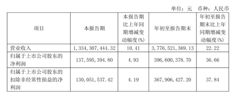 前三季度营业收入37.77亿元,