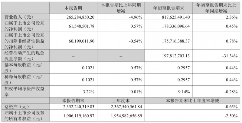 前三季度营业收入8.18亿元